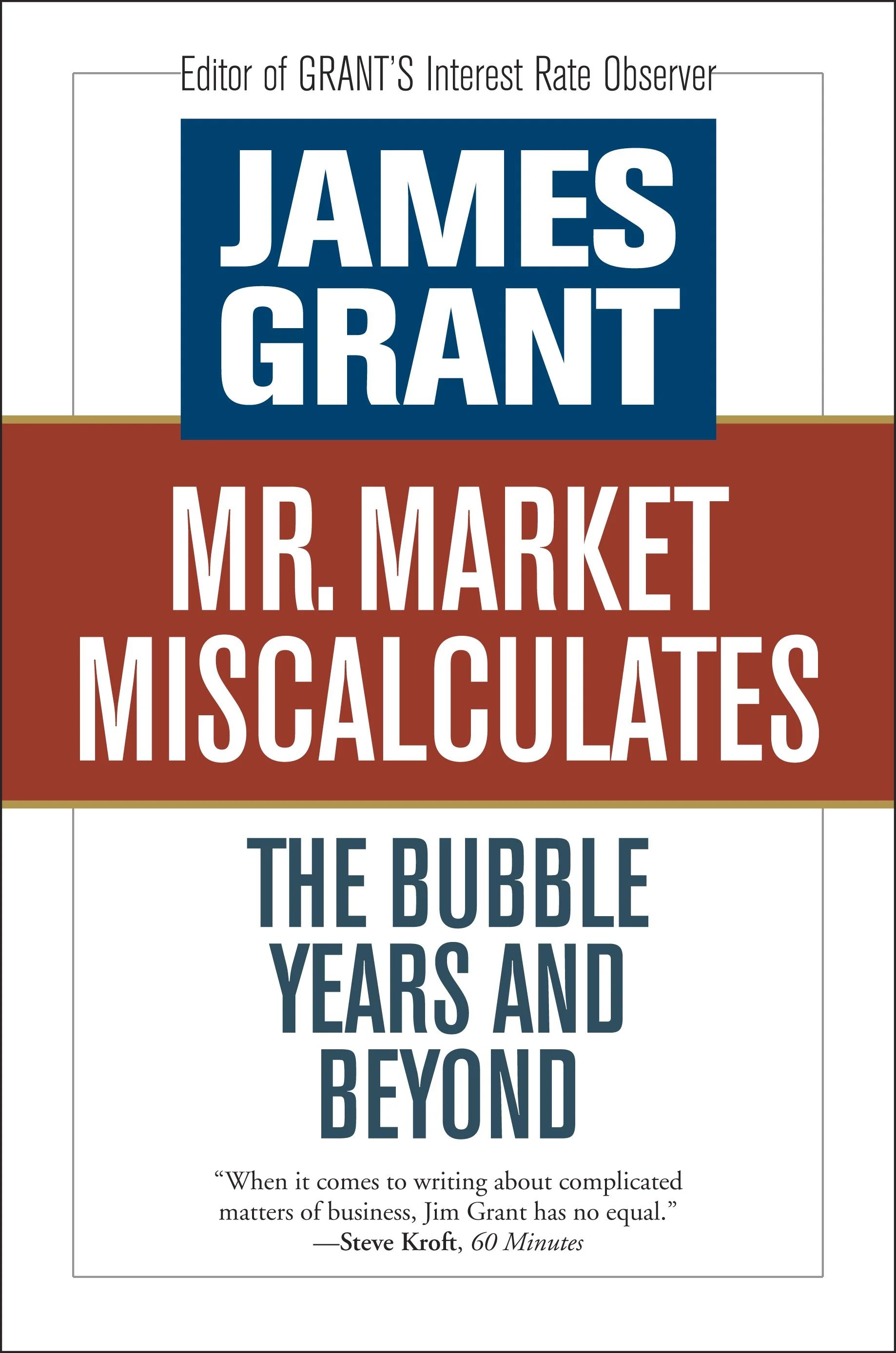 “Throughout the last decade, James Grant has been . . . foretelling disaster. . . . The proof is in his recently published book, Mr. Market Miscalculates: The Bubble Years and Beyond.”